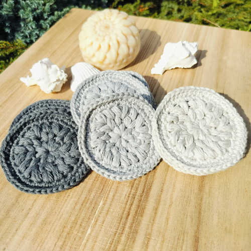 Rondellerne hækles i bomuld og kan bruges igen og igen. De er perfekte til dig der ønsker det miljøvenlige alternativ, som både skåner hud og miljø.