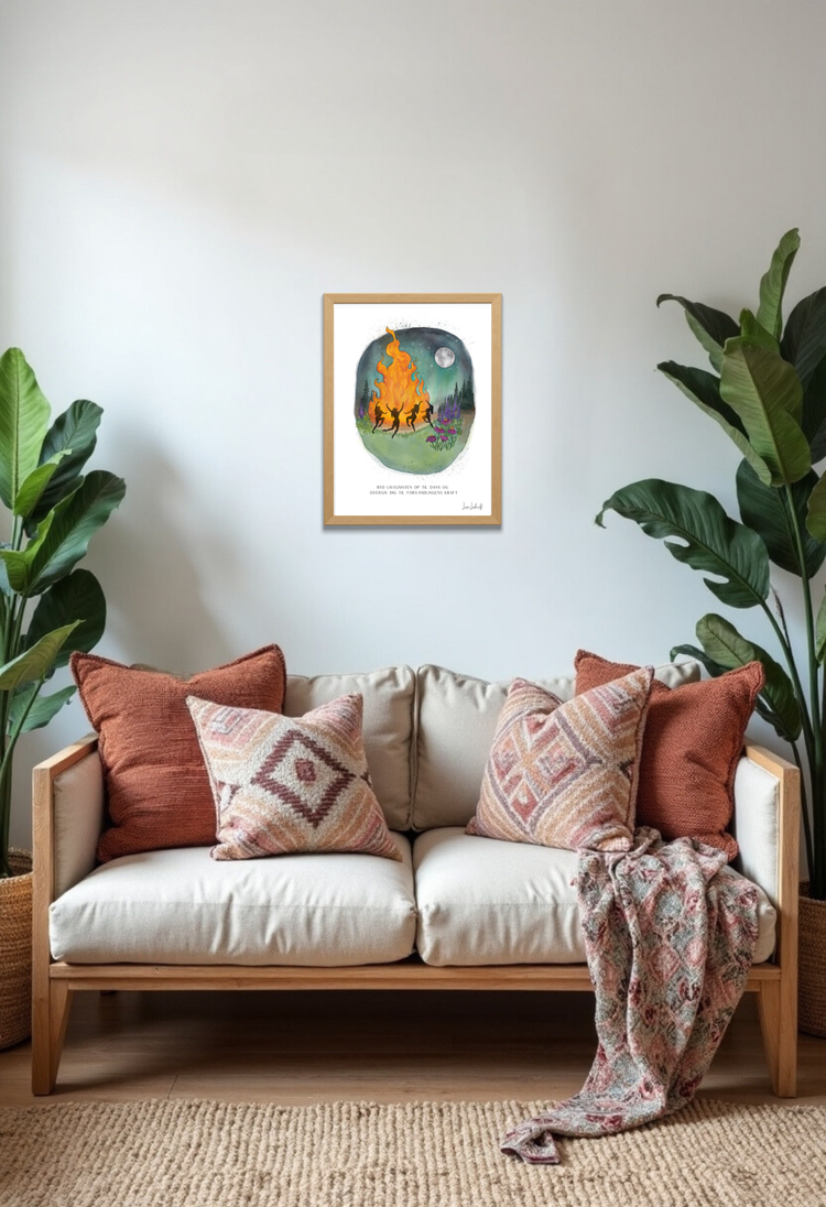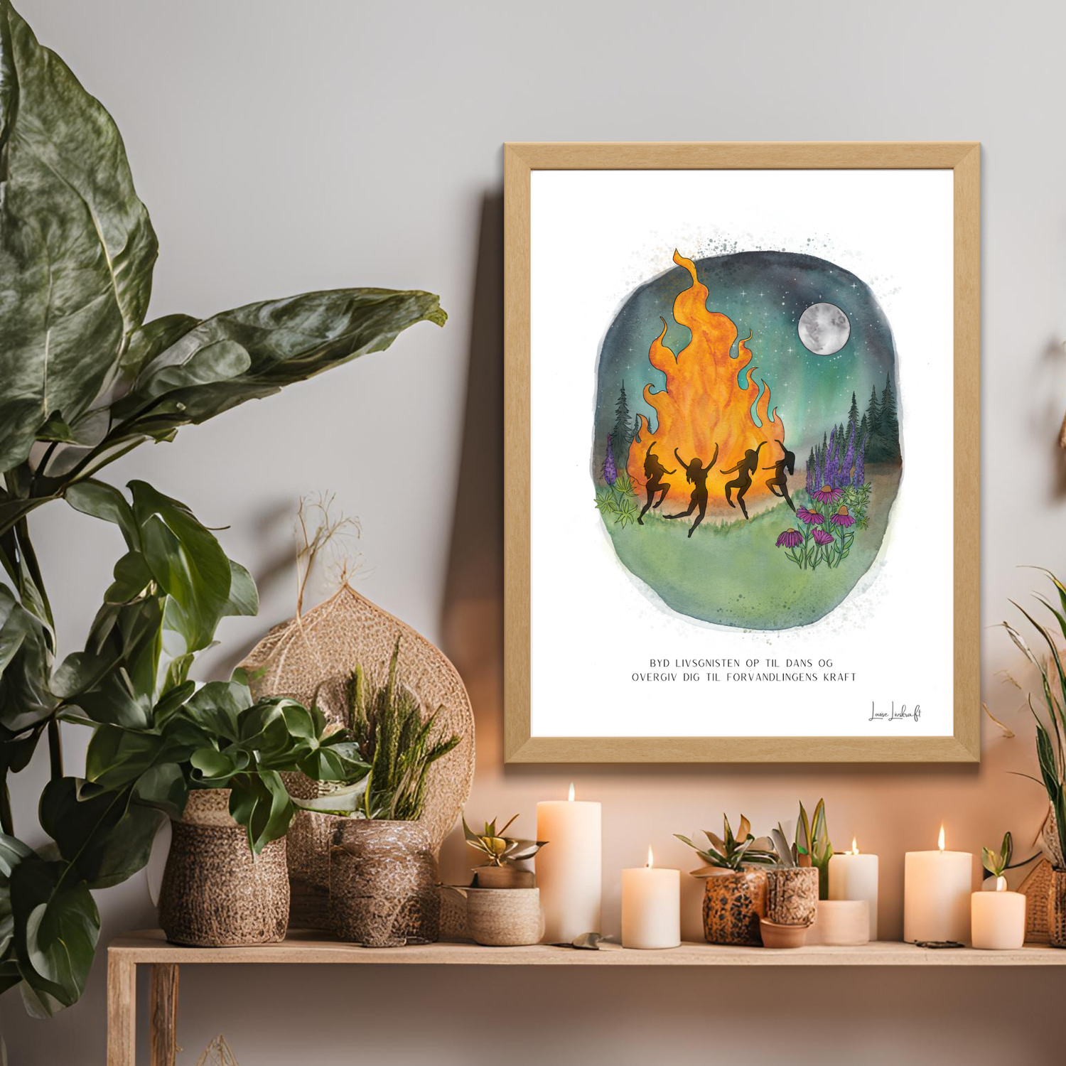 Denne kraftfulde kunstplakat er en hyldest til ILD elementet. Plakaten er til dig, der ønsker at bringe mere glæde og frihed ind i dit rum og søger en påmindelse om styrken i fællesskab og forvandling. Den passer perfekt i hjemmet til dem, der finder inspiration i naturen og som ønsker en daglig invitation til at leve med lidenskab, spontanitet og åbenhed.