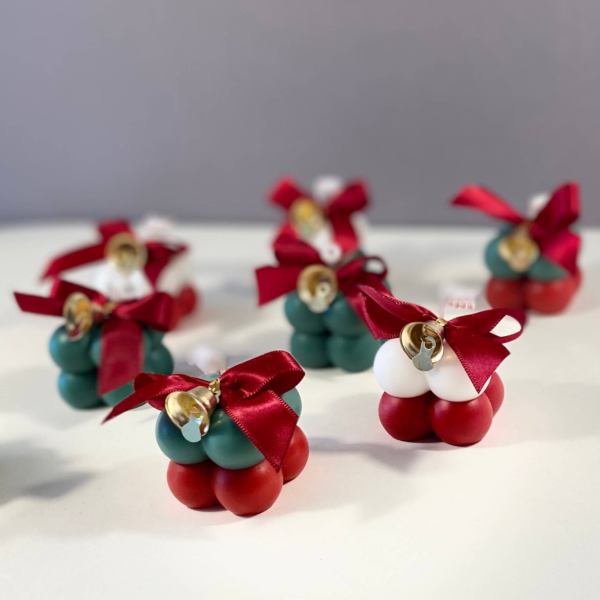 Som en ekstra fin detalje er hvert lys pyntet med en lille klokke og en rød sløjfe, der giver et charmerende strejf af jul.