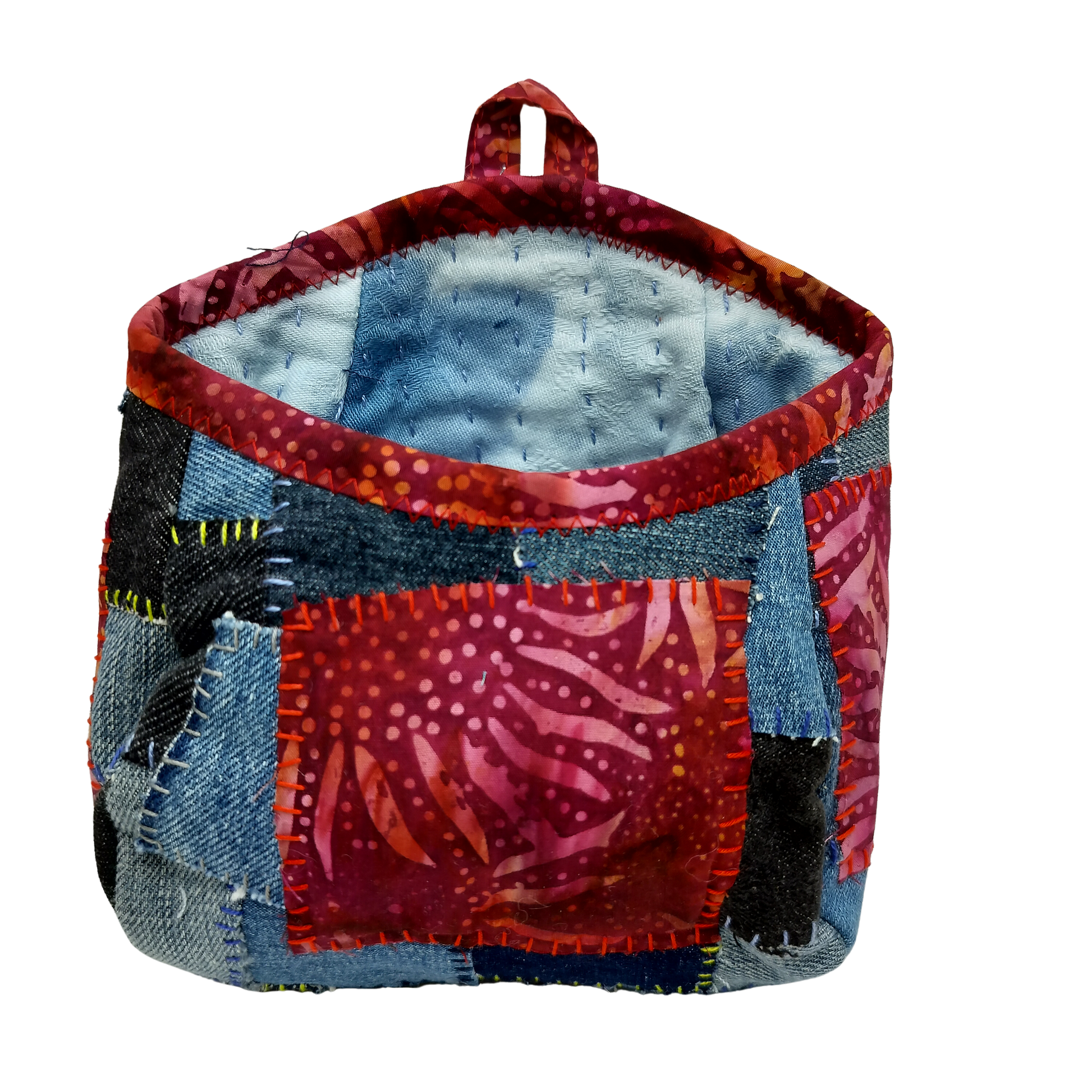 Se disse praktiske stofkurve, der kan hænges op – perfekt til organisering og opbevaring af alt fra hårpynt og små nips til sy- og strikkeprojekter. Rustik by Nøhr har syet dem i recycled stof og med boro-teknik, som giver hver kurv et unikt, håndlavet præg, der samtidig gør den både bæredygtig og stilfuld. Nogle af kurverne er også pyntet med smukt broderi, der tilføjer et ekstra kunstnerisk element.