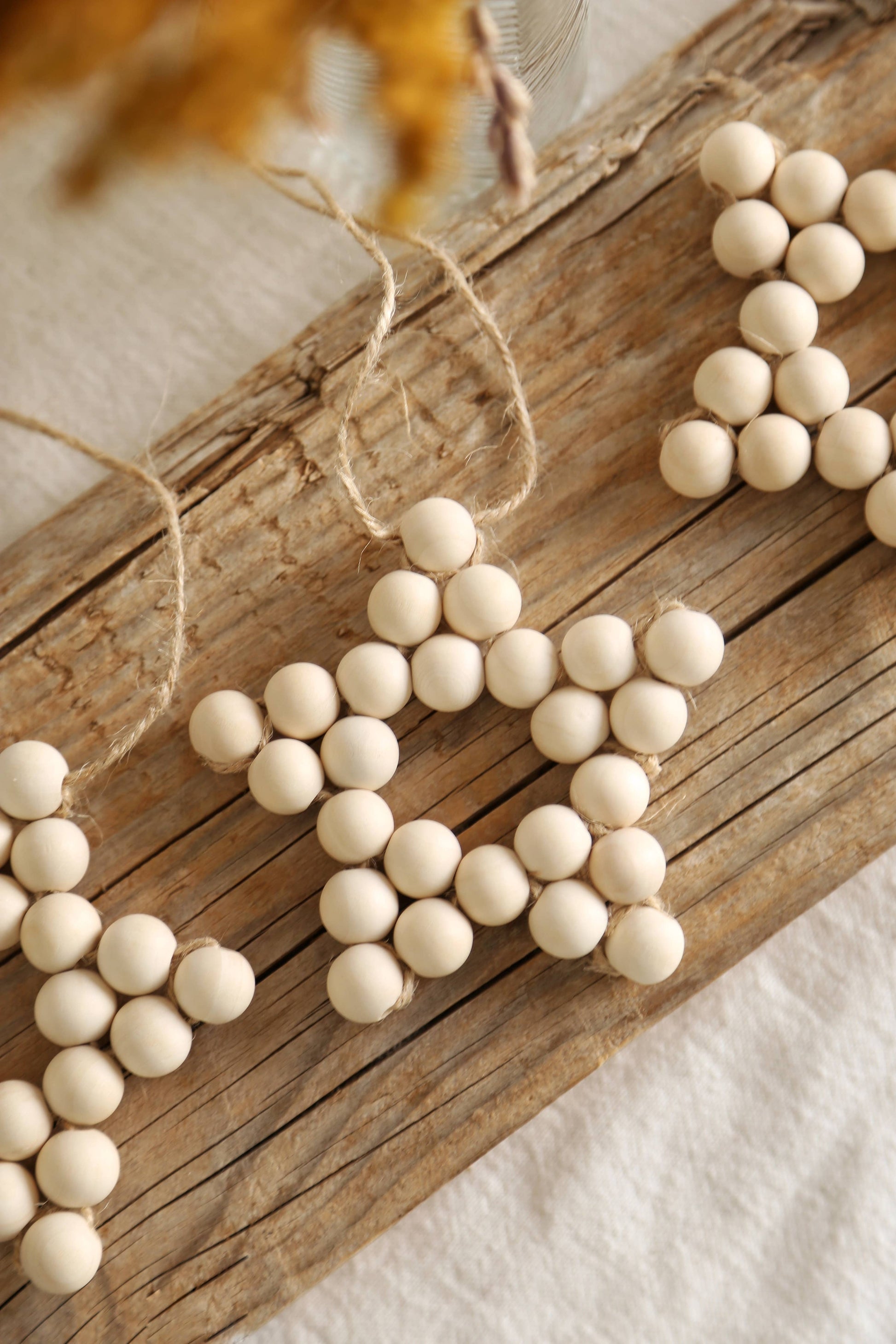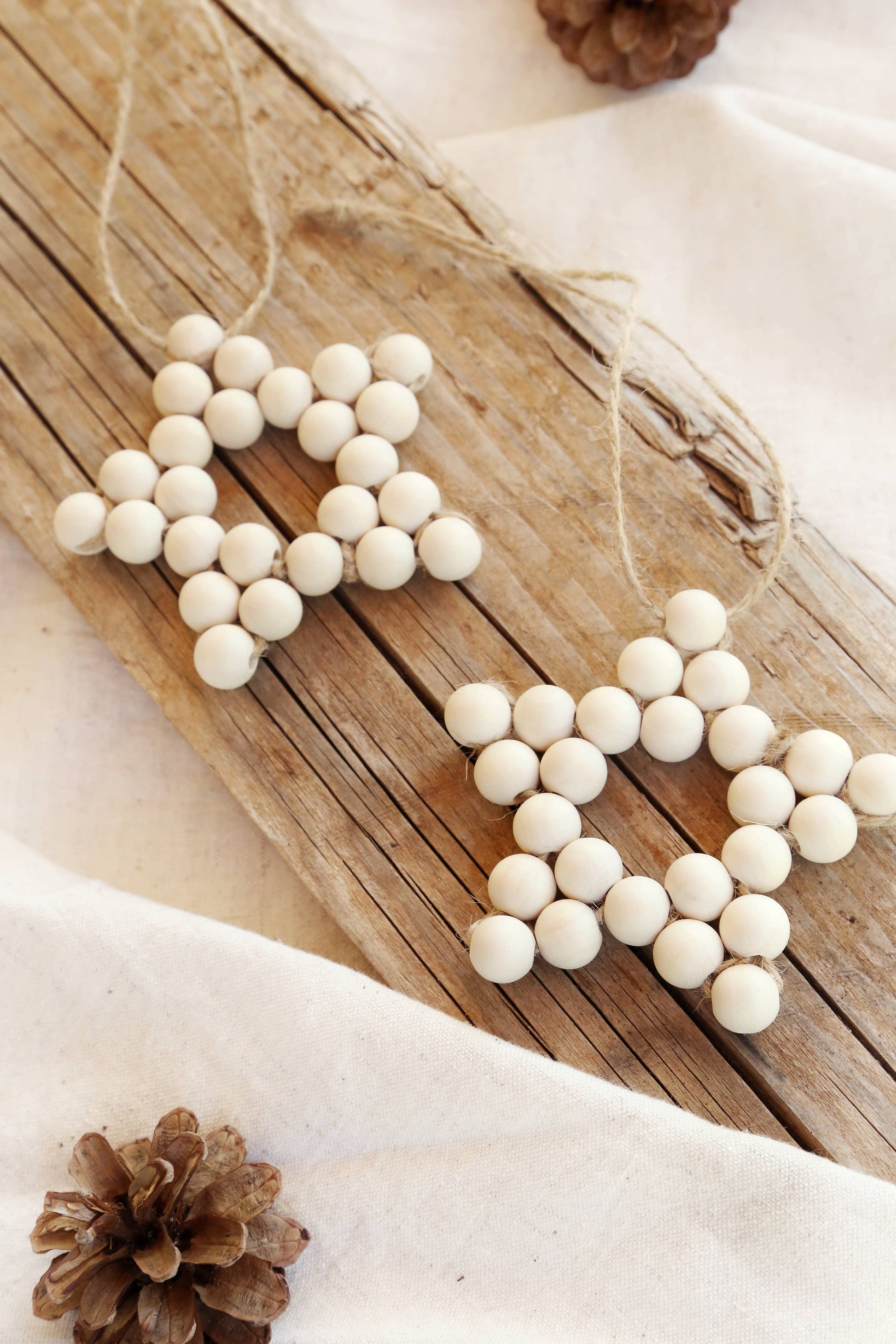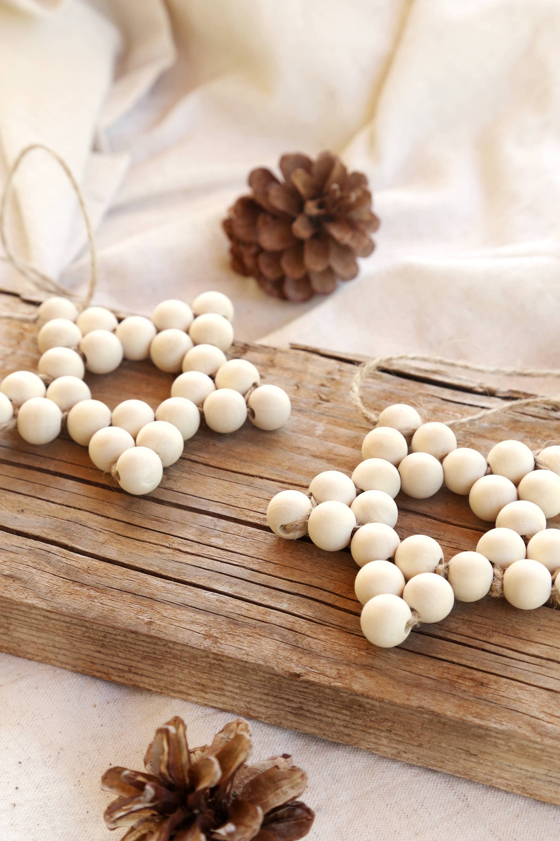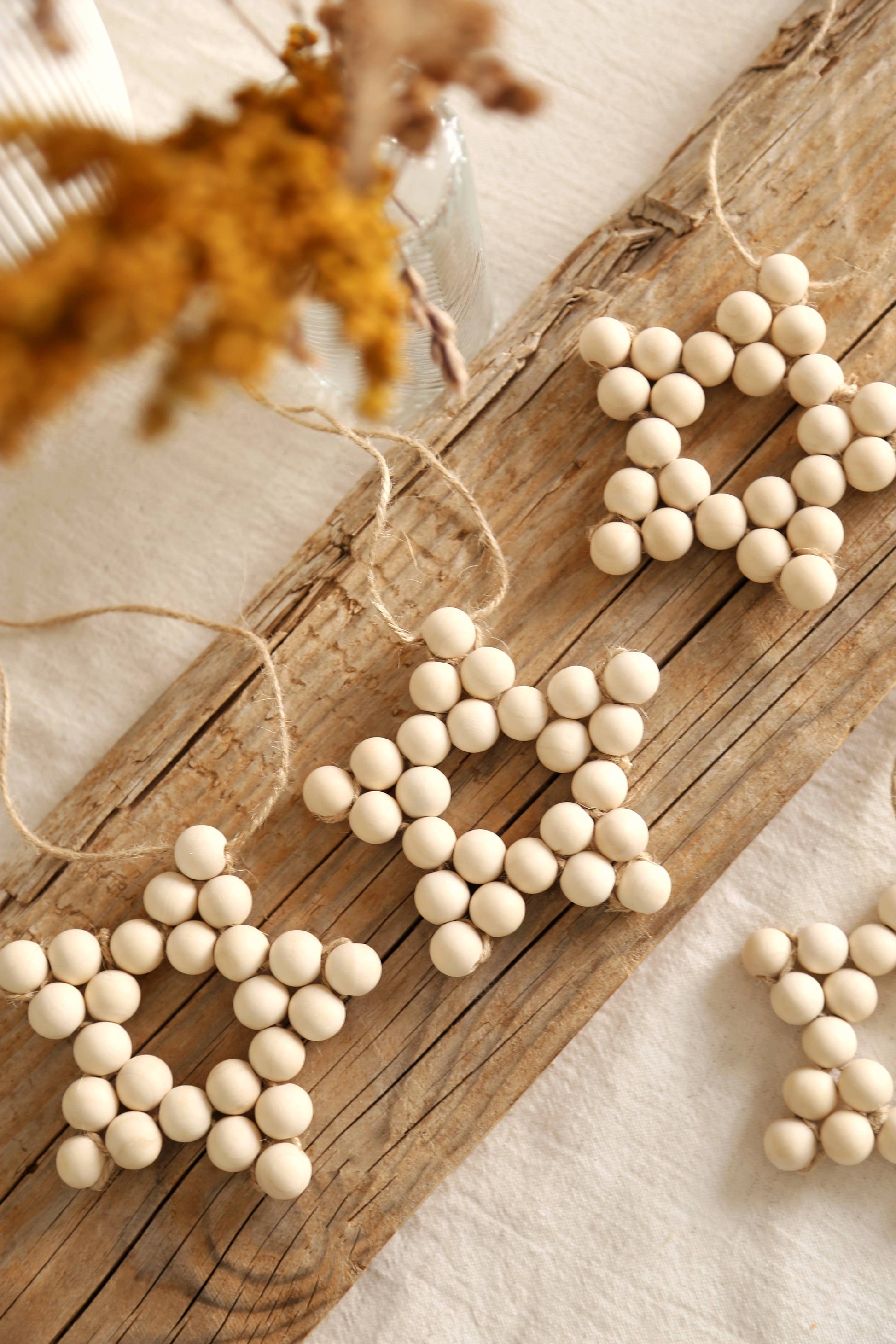 Giv dit juletræ et naturligt og autentisk udtryk med denne smukke stjerneformede dekoration håndlavet af naturlige, ubehandlede træperler.
