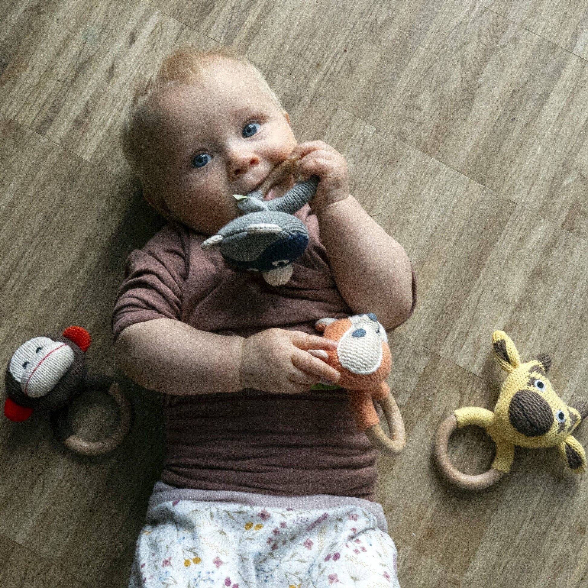 Når de første tænder begynder at komme frem, kan babyen blive utålmodig og søge lindring ved at bide. Denne håndlavede bidering fra HiCKups med en fin lille ræv er skabt til netop at give trøst og glæde.