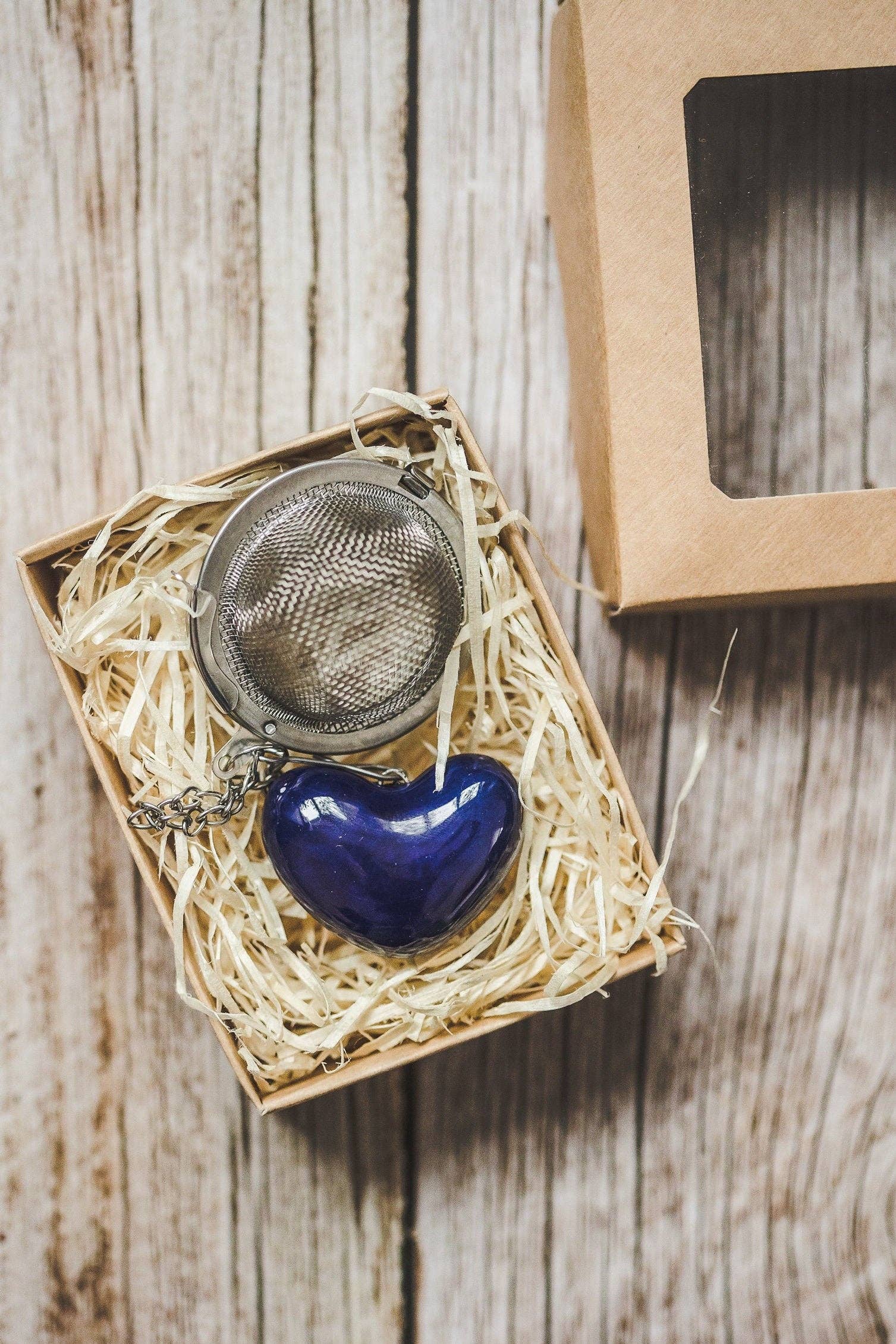 Håndlavet teæg med keramisk blåt hjerte 💙
