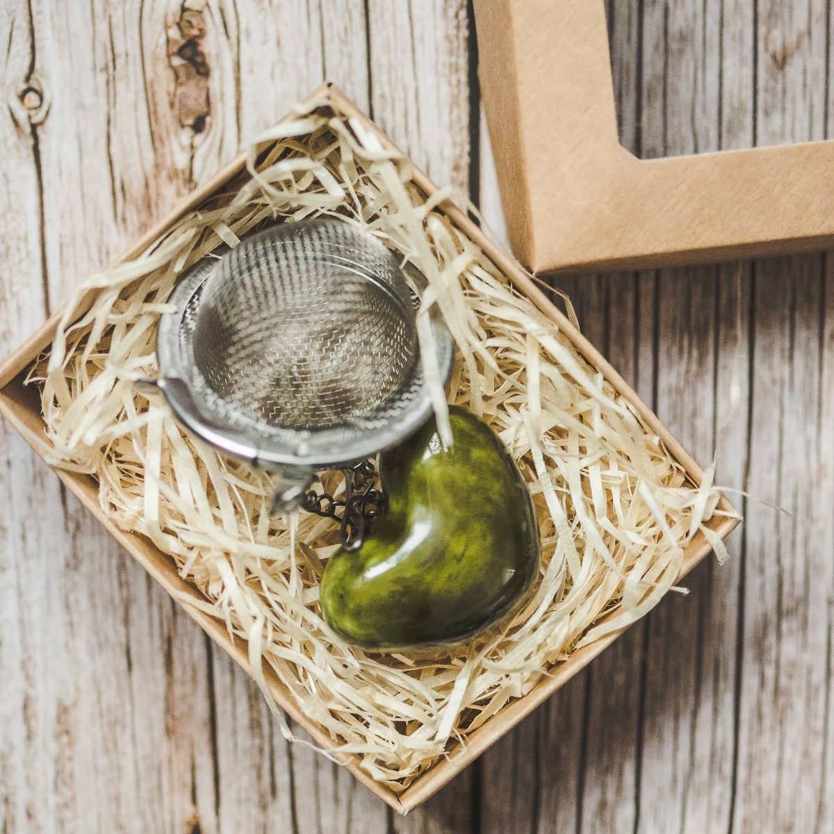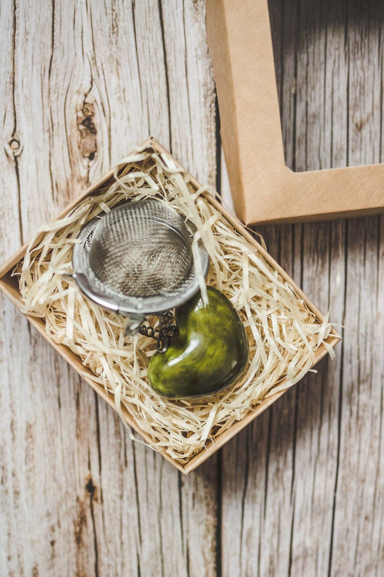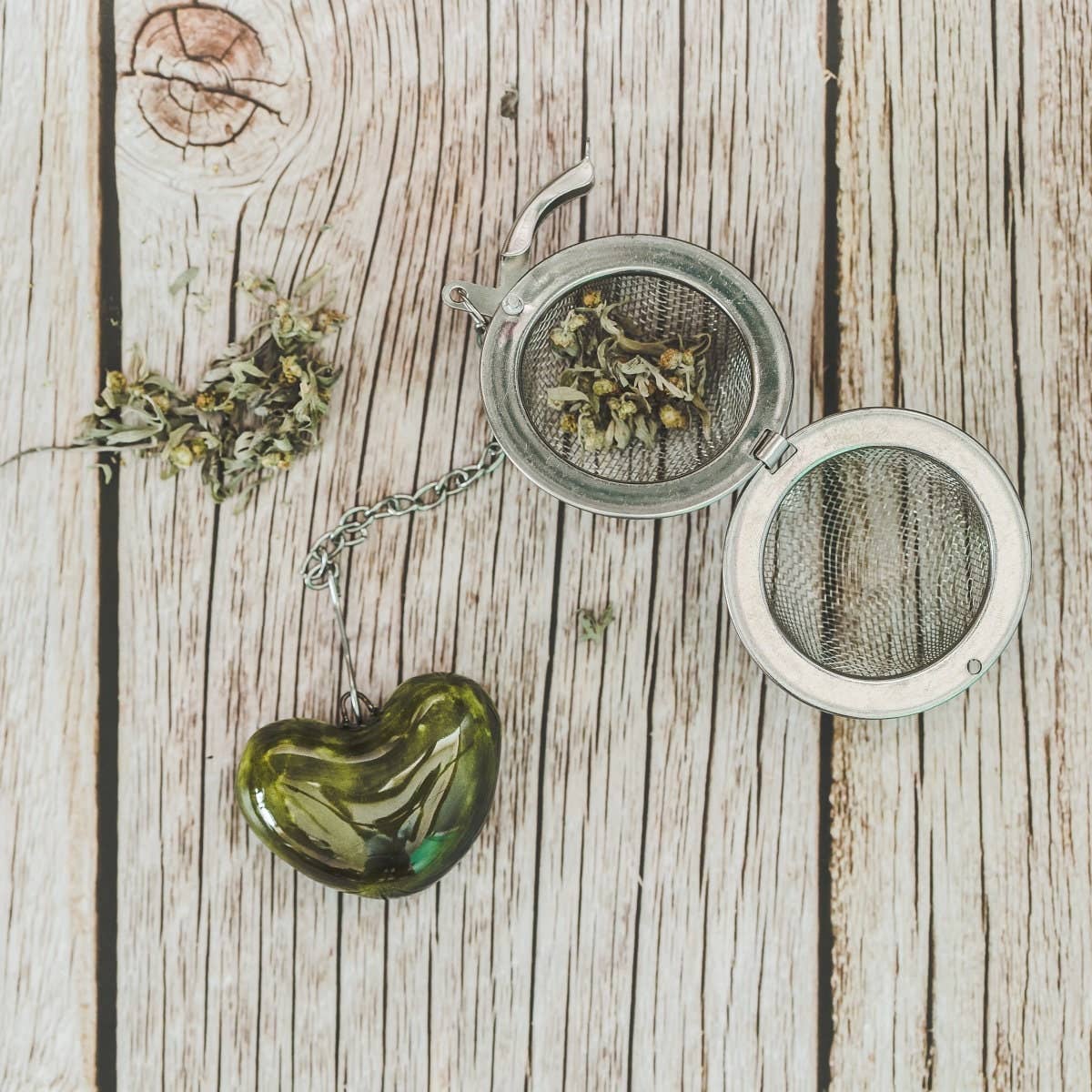 Håndlavet teæg med keramisk grønt hjerte 💚