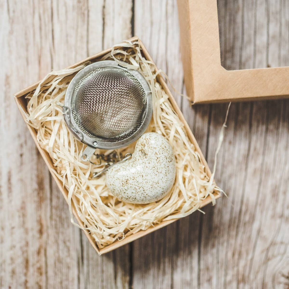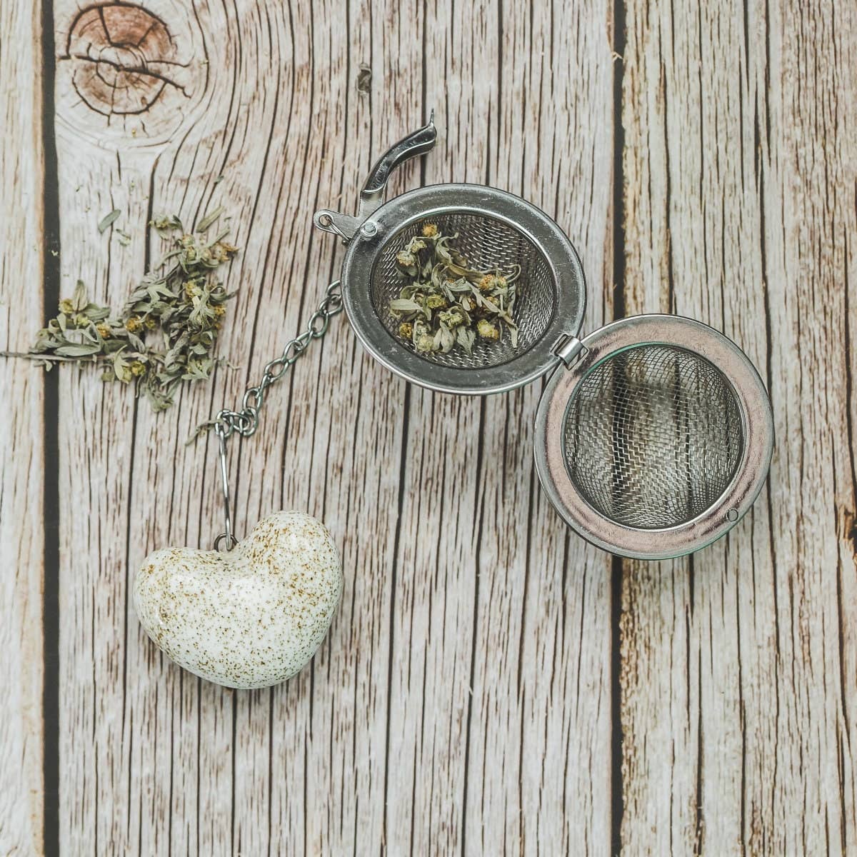 Håndlavet teæg med keramisk hvidt hjerte 🤍